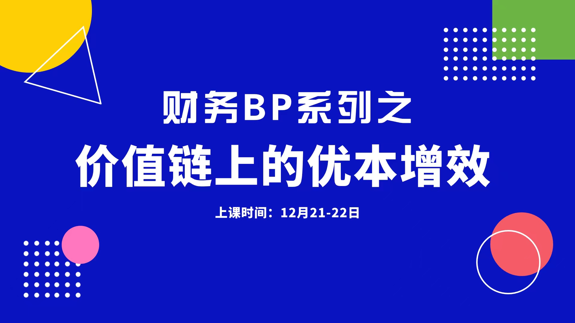 《財務BP系列之--價值鏈上的優本增效》 |